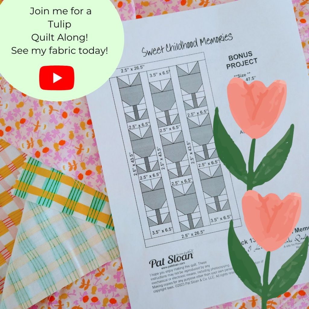 *** Tulip QAL *** When I designed the Bonus layout for the Block Wed tulip, I did it for a specific spot in my home. I decided to make it up in April (2023) so I can enjoy it!) *********************** Download Pat Sloan Block 13 Sweet Childhood memories ********************** ::Fabric I’m using Lucky Rabbit Fabric […]
